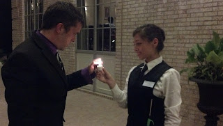 Thirty minutes before the couple exited the reception space, we teamed up with members of the banquet staff from the reception location to line the exit pathway with the 100 lanterns, lit the votive candles and placed them inside each lantern. Here is a glimpse of what that process looked like below.